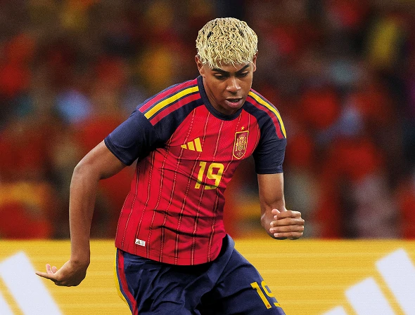 Con rojo vibrante y azul profundo como colores principales, España resalta su elegancia y orgullo, reflejando los elementos clásicos de su bandera en un diseño lleno de carácter.